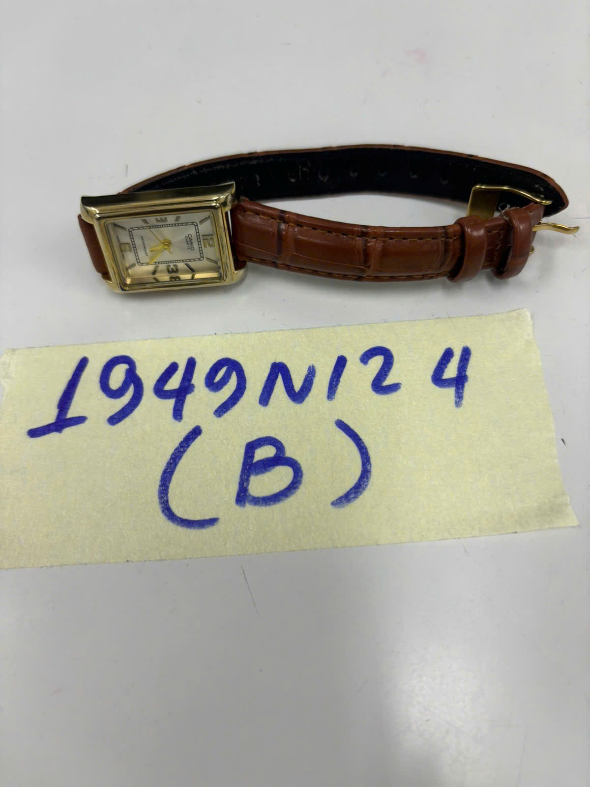 Ngày tiếp nhận: 14/11/2024 Mã hồ sơ: 1949N2024B Mô tả: 01 đồng hồ đeo tay dây da màu vàng hiệu CASIO. |