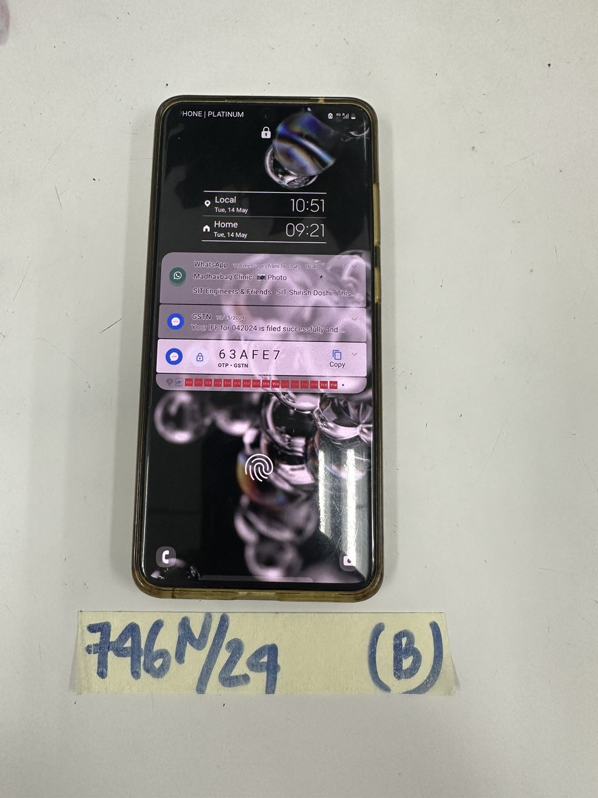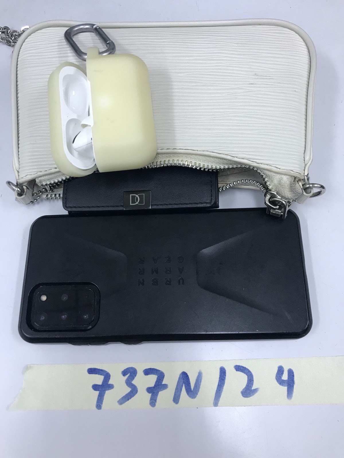 Ngày tiếp nhận: 12/5/2024 điện thoại cảm ứng màu đen SAMSUNG, 01 hộp sạc, 01 tai nghe không dây bên trái, màu trắng. |