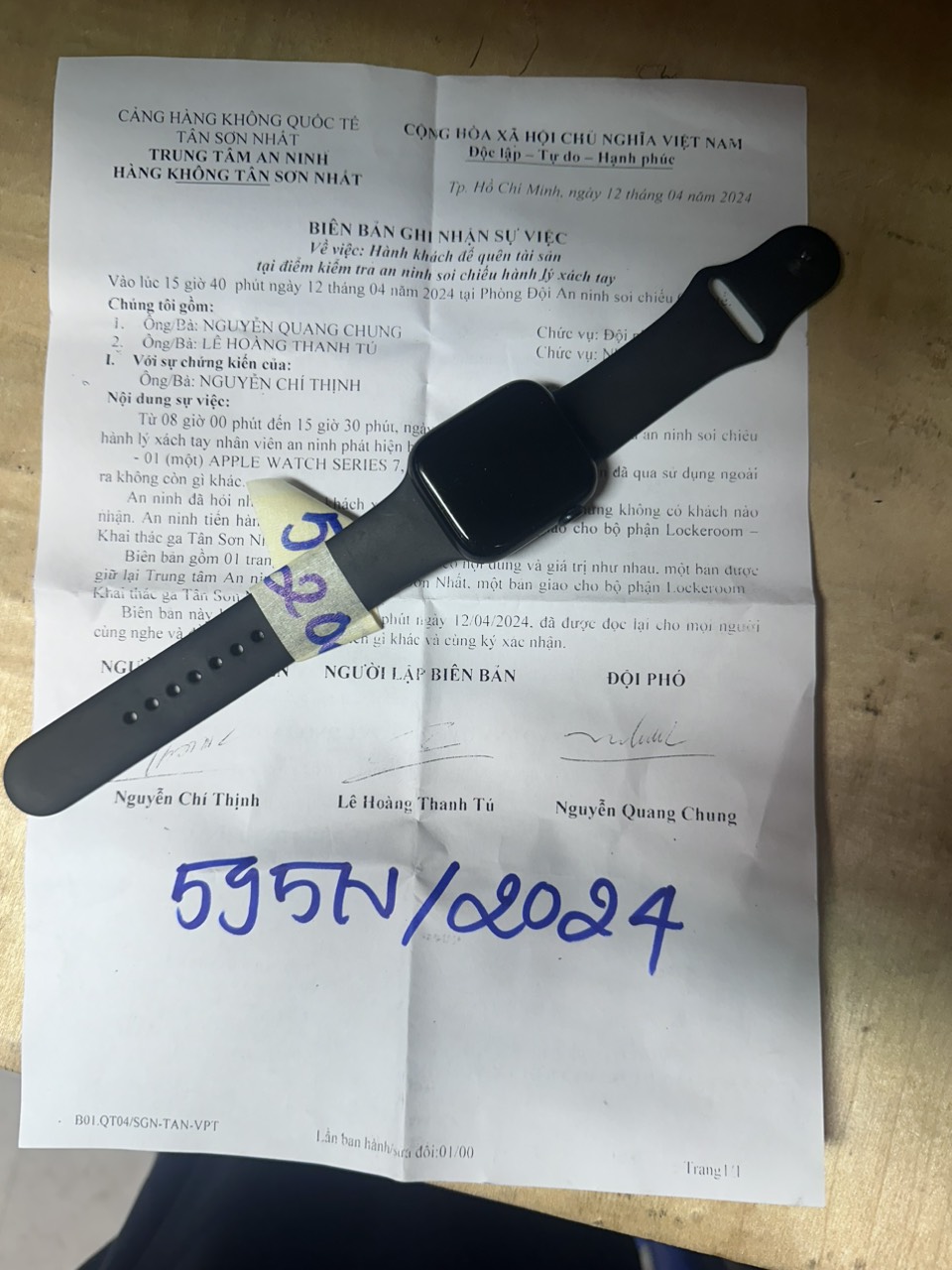 THỐNG KÊ TÀI SẢN, HÀNH LÝ CỦA KHÁCH ĐÁNH RƠI, BỎ QUÊN TỪ NGÀY 13/4/2024 ĐẾN NGÀY 15/4/2024
