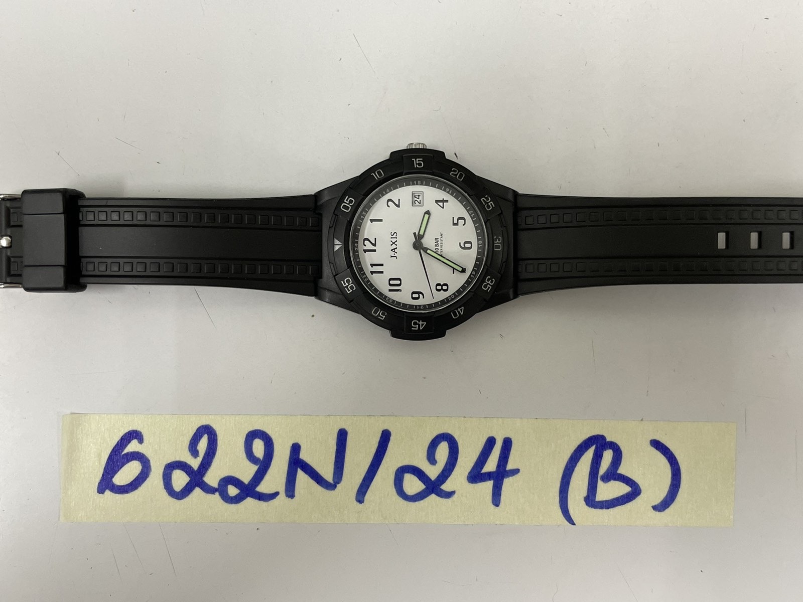 Ngày tiếp nhận: 19/4/2024 nhựa có logo J-AXIS, mặt tròn dây đồng hồ bằng nhựa màu đen, mặt sau đồng hồ có ký hiệu NAG49. |