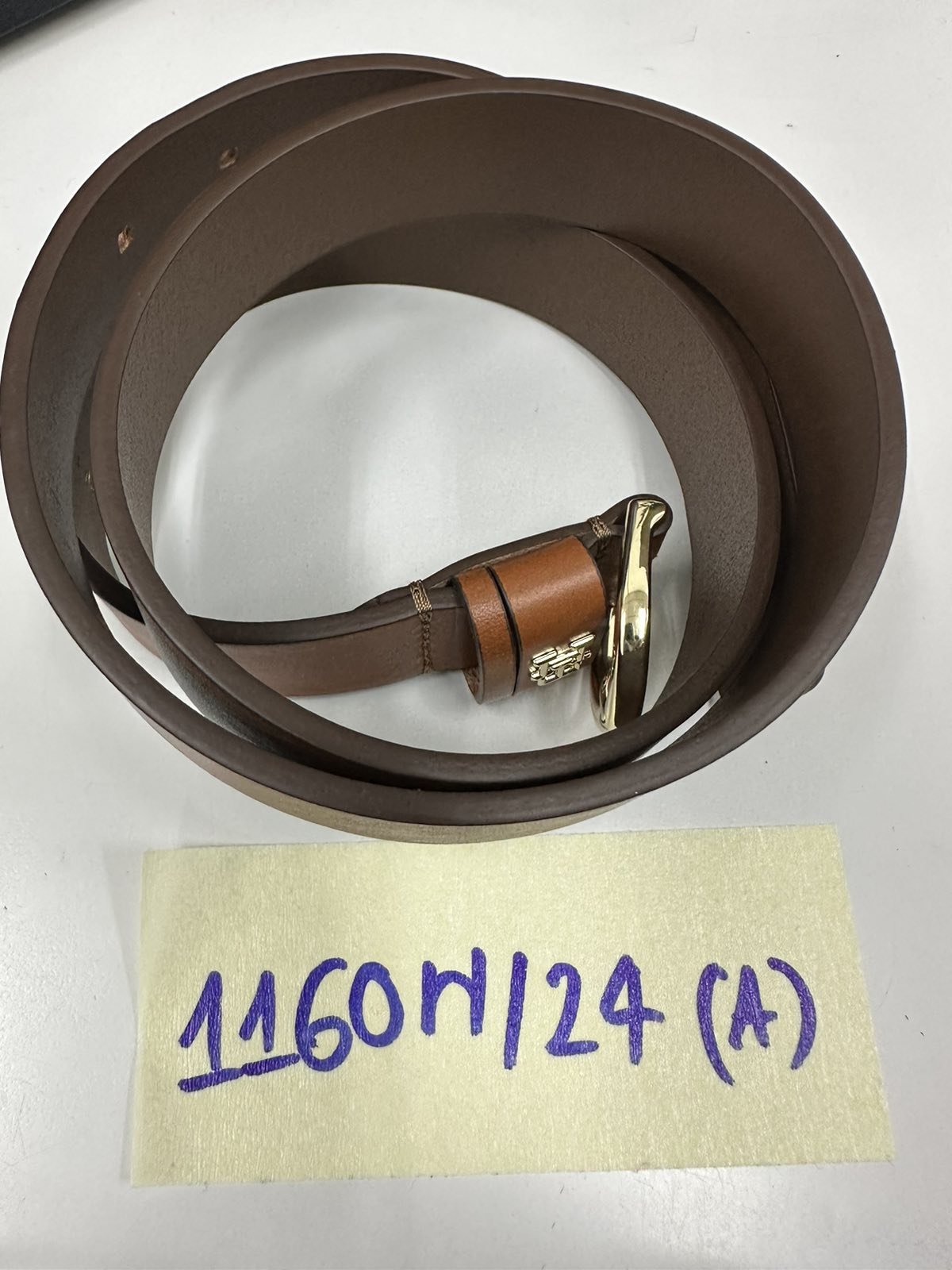 Ngày tiếp nhận: 19/7/2024 Mã hồ sơ: 1160N2024A Mô tả: 01 dây thắt lưng mặt màu nâu mặt khóa màu vàng bên trong có ghi chữ "TOMMY HILFIGER". |