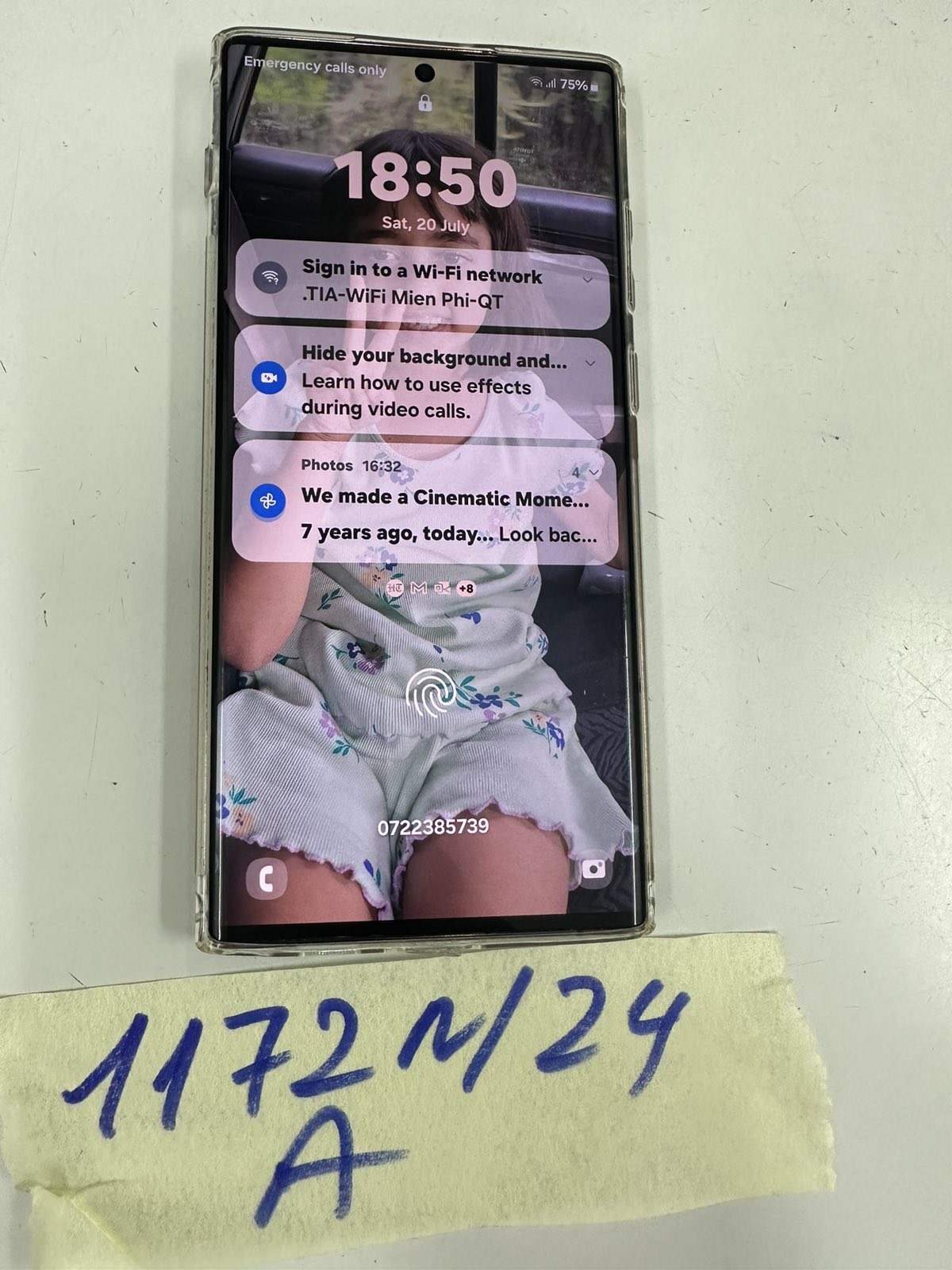 Ngày tiếp nhận: 20/7/2024 Mã hồ sơ: 1172N2024A Mô tả: 01 điện thoại di động màu đỏ có chữ SAMSUNG. |