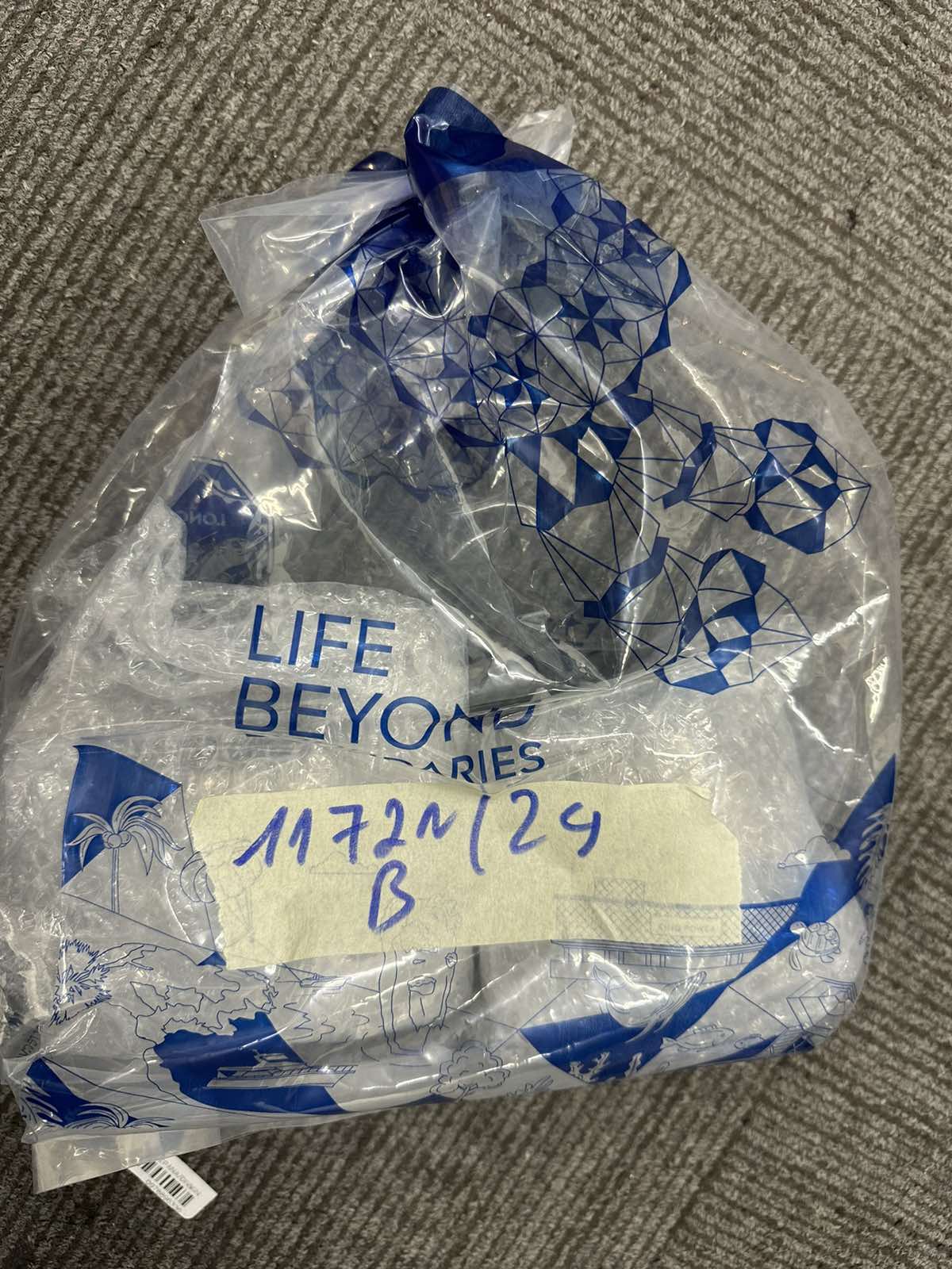 Ngày tiếp nhận: 22/7/2024 Mã hồ sơ: 1183N2024F Mô tả: 01 túi màu xám đen có chữ TICKETTOTHEMOON chứa 01 chìa khóa có chữ RANGEROVER và một vài bộ quần áo. |