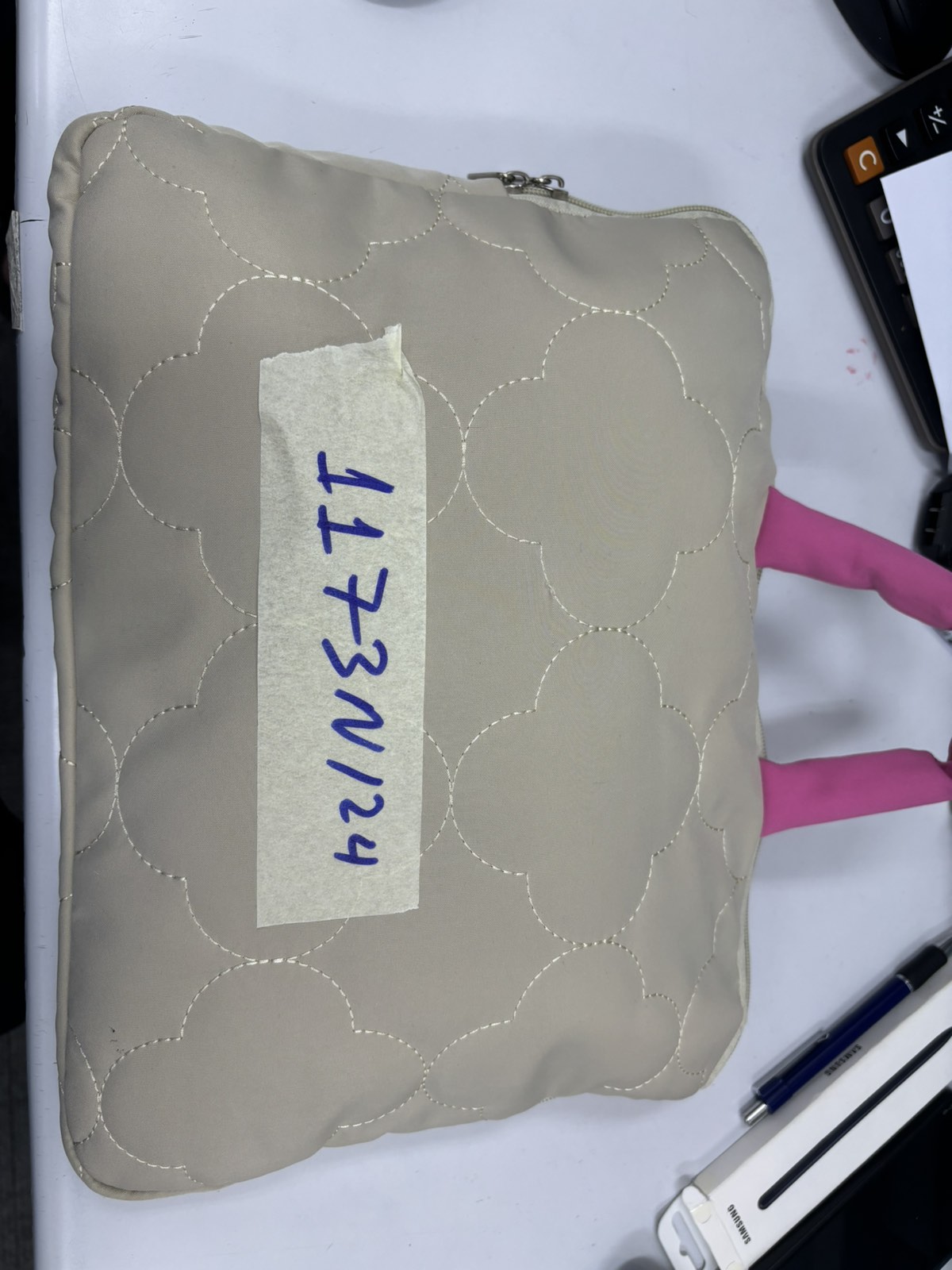Ngày tiếp nhận: 21/7/2024 Mã hồ sơ: 1175N2024A Mô tả: 01 Túi xách tay: 01 hộp màu trắng bên trong là 01 đồng hồ màu vàng có chữ MICHAEL KORS, 01 túi vải màu đen bên trong là mỹ phẩm đã qua sử dụng, pin sạc dự phòng màu xanh dương. |