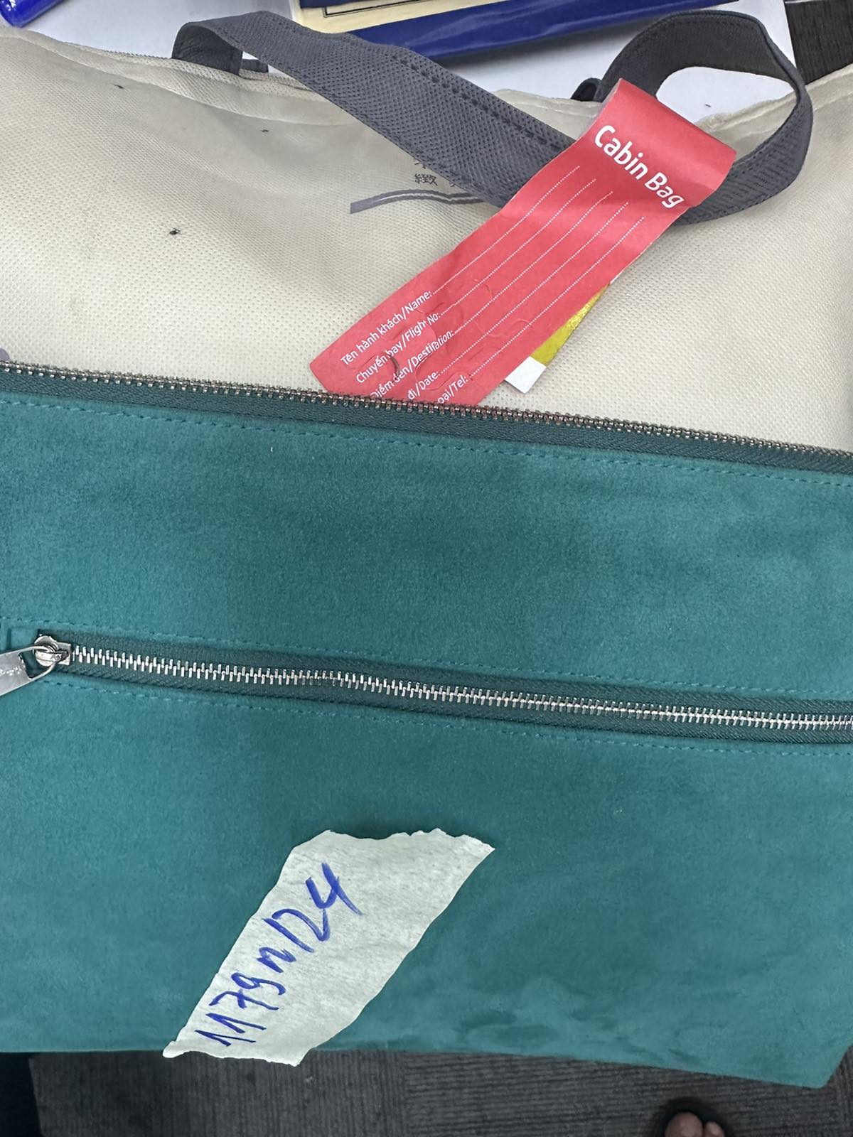 Ngày tiếp nhận: 21/7/2024 Mã hồ sơ: 1179N2024 Mô tả: 01 túi vải màu trắng đựng thực phẩm và 01 túi vải màu xanh lá đựng đồ dùng cá nhân. |