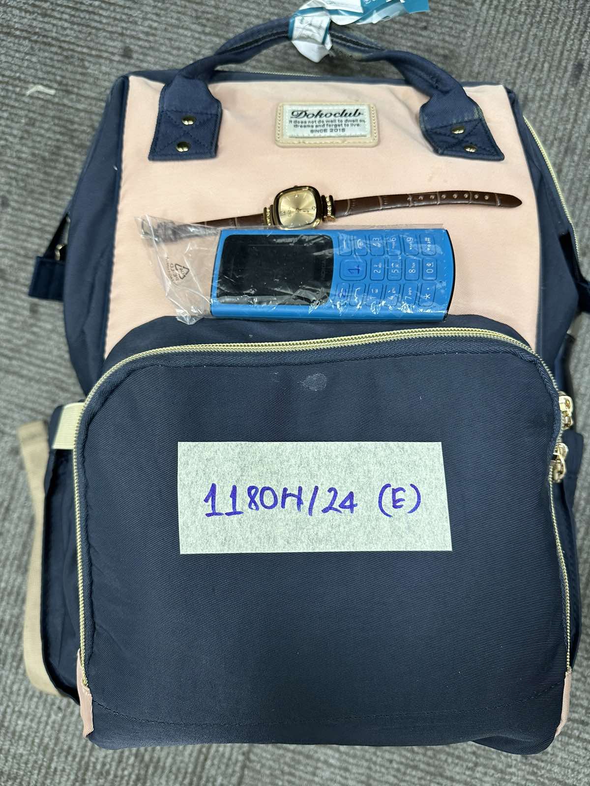 Ngày tiếp nhận: 21/7/2024 Mã hồ sơ: 1180N2024E Mô tả: 01 balo màu hồng đen hiệu DokoClub, bên trong có quần áo, vật dụng cá nhân - 01 đồng hồ mặt kim loại màu vàng, dây da màu nâu đỏ có ghi chữ CILOA (đã qua sử dụng) + 01 điện thoại Nokia màu xanh, màn hình đen trắng. |
