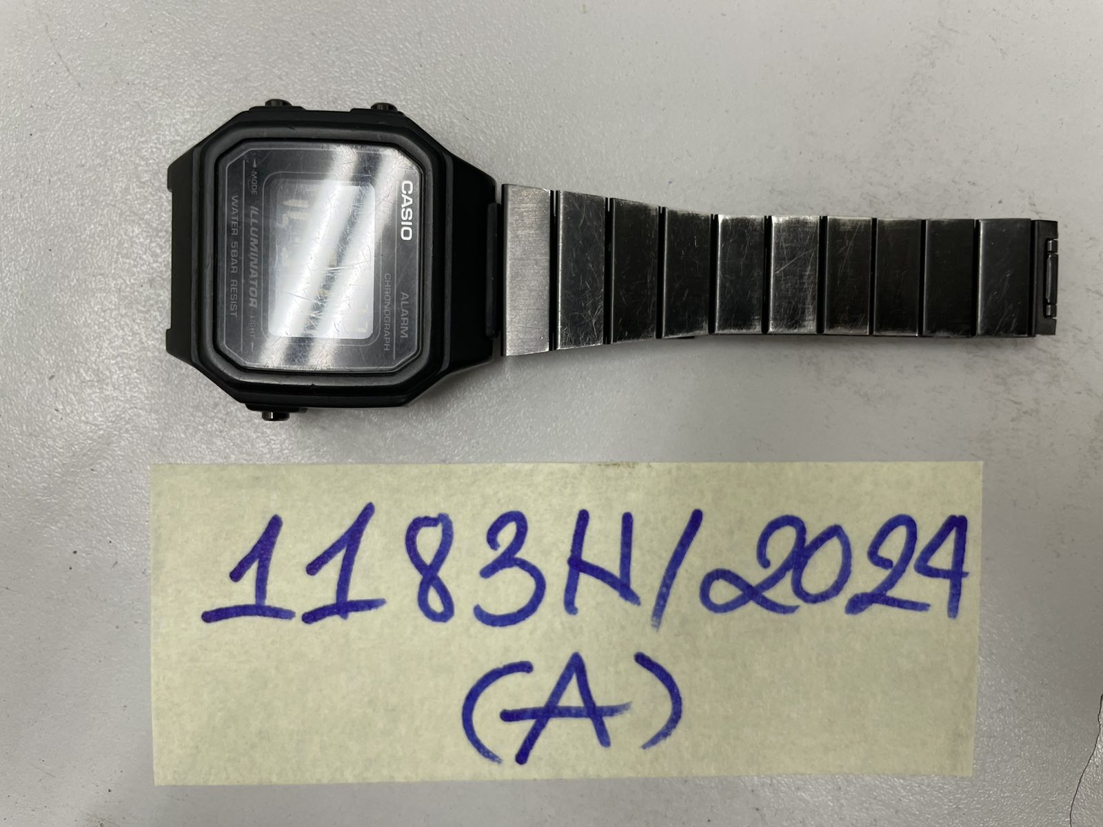 Ngày tiếp nhận: 22/7/2024 Mã hồ sơ: 1183N2024A Mô tả: 01 đồng hồ màu đen, dây kim loại màu đen, hiệu CASIO |