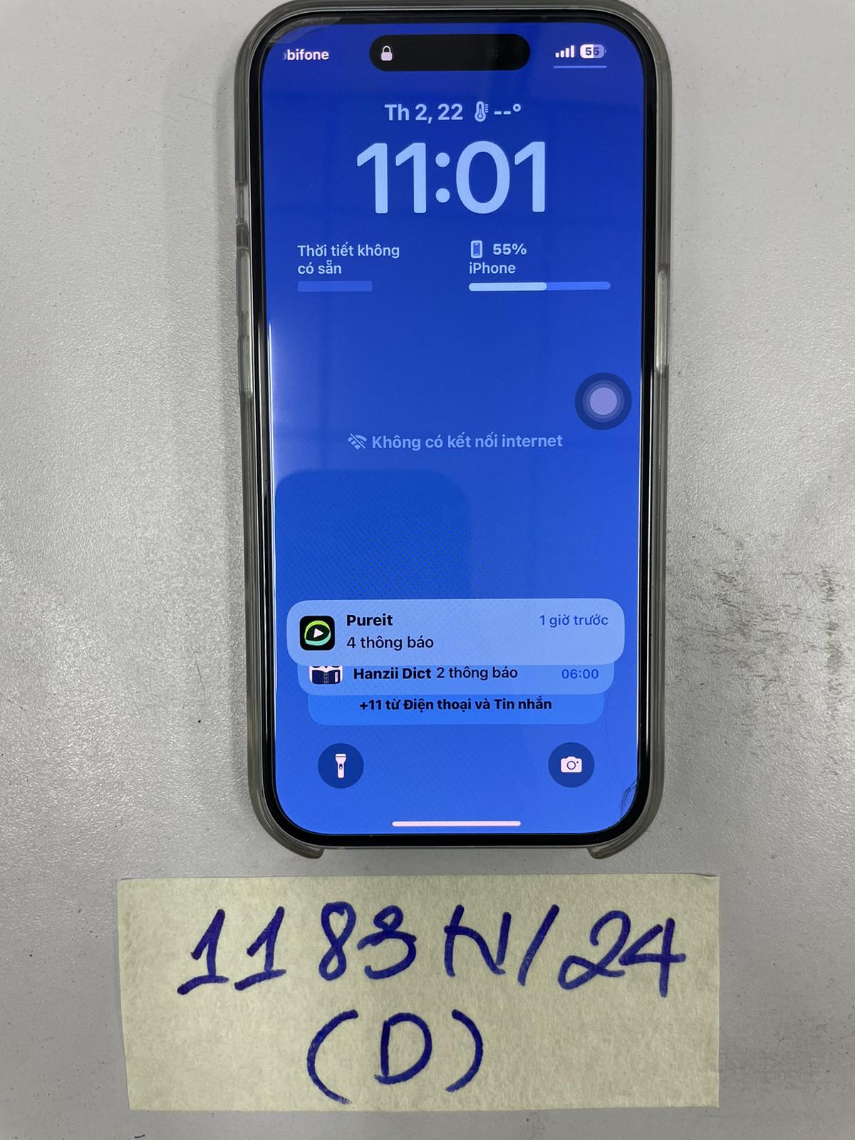 Ngày tiếp nhận: 22/7/2024 Mã hồ sơ: 1183N2024D Mô tả: 01 Iphone màu trắng sữa |
