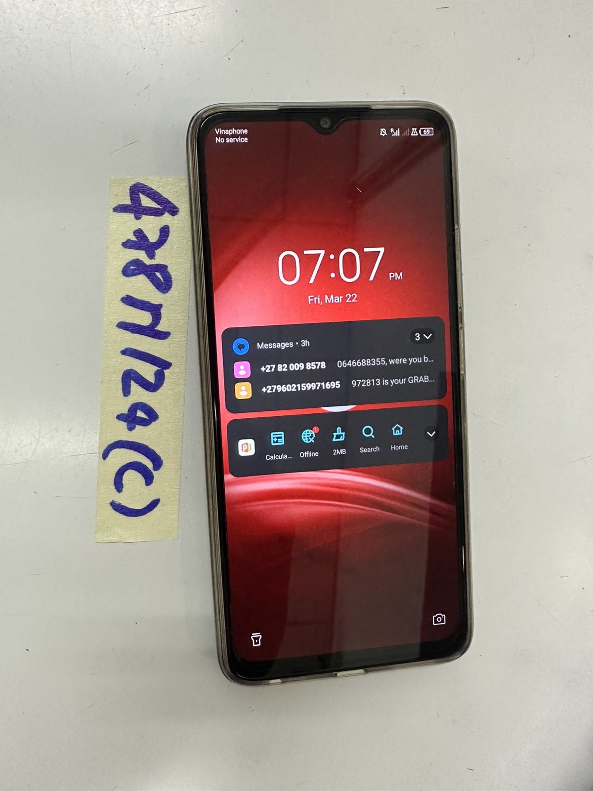 Ngày tiếp nhận: 22/03/2024 Tecno màu tím, IMEI: 353781283851226, ốp lưng nhựa trong suốt. |