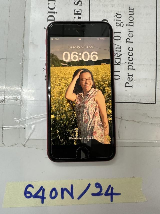 Ngày tiếp nhận: 23/4/2024 màu đỏ, mặt kính cường lực bị vỡ ốp lưng silicon màu đen đã qua sử dụng. |