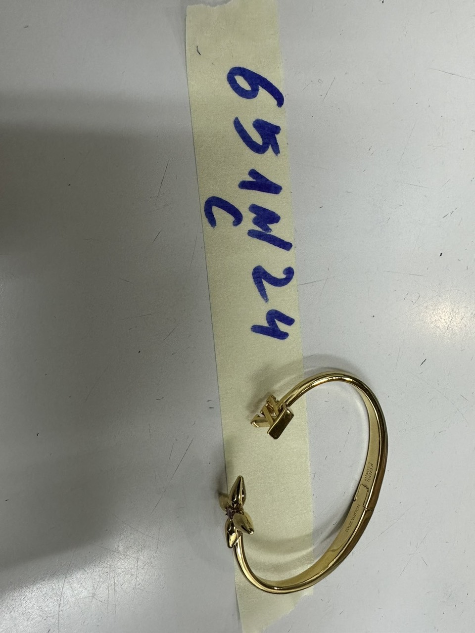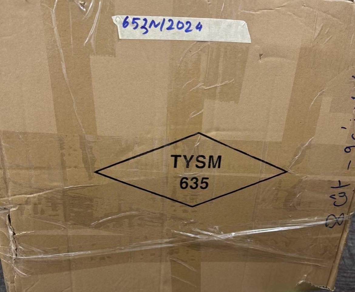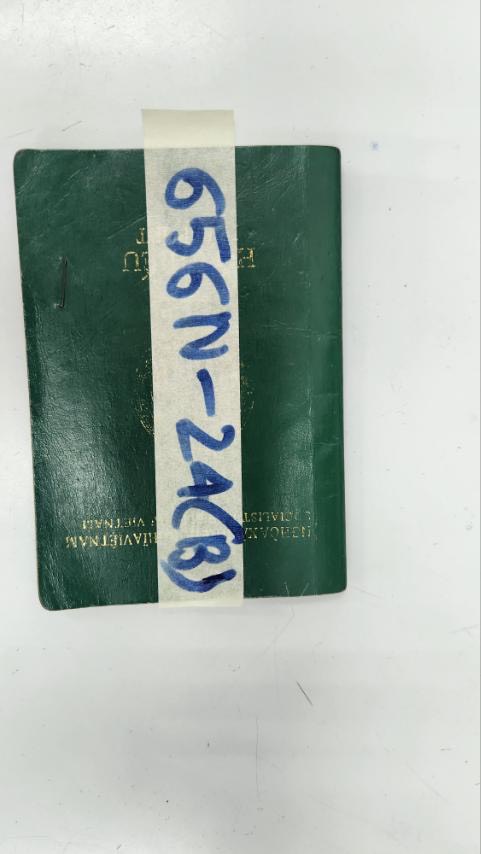 Ngày tiếp nhận: 23/4/2024 khắc chữ DOM, dây nhựa màu xanh lá cây đã qua sử dụng. |