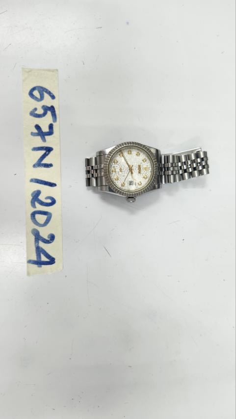 Ngày tiếp nhận: 26/4/2024 chữ ROLEX dây kim loại màu bạc đã qua sử dụng. |