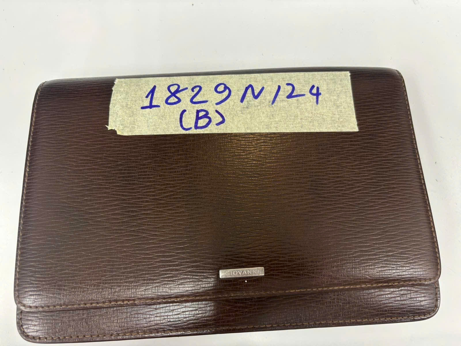 Mô tả: 01 túi xách tay màu nâu có chữ GIOVANNI bên trong có thuốc tây, đồ dùng cá nhân + 01 pin sạc dự phòng, 01 mắt kính (gọng bằng gỗ).