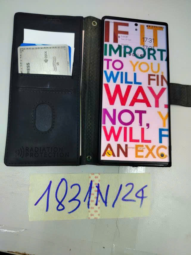 Mô tả: 01 Điện thoại di động màu đỏ có bao da màu đen có chứa: số tiền 62 đô la Singapore, hai thẻ ngân hàng mang tên TAN TJIEN.