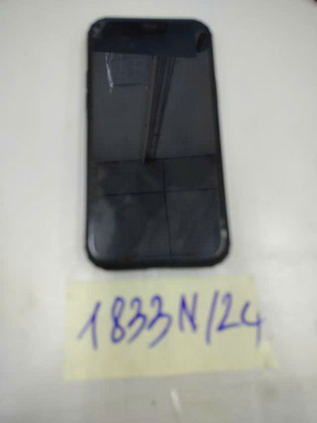 Mô tả: 01 Điện thoại di động màu xám có chữ iPhone vỡ mặt kính trước và sau.