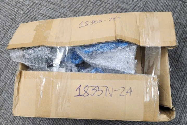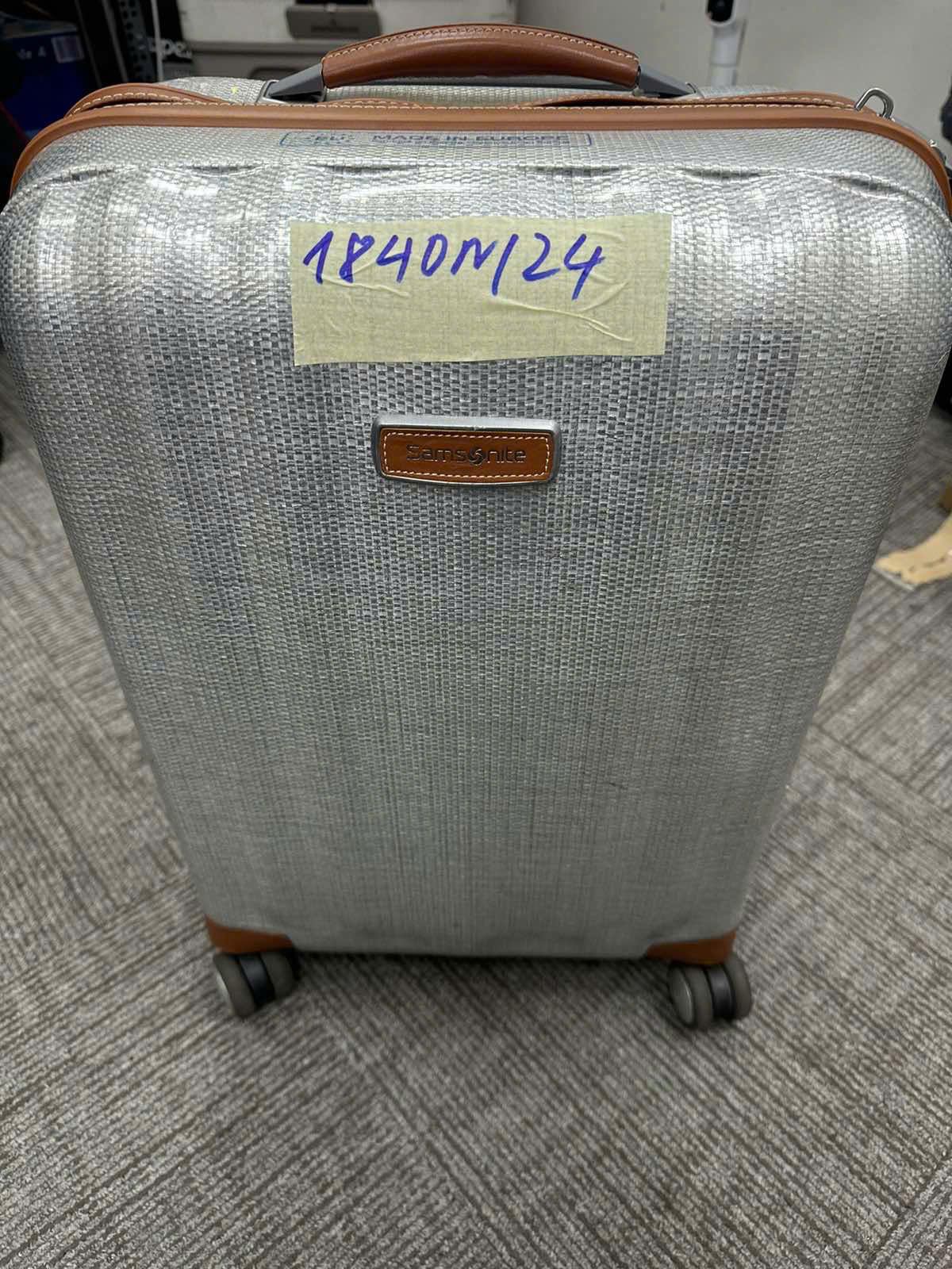 Mô tả: 01 Valy màu xám/ nâu có chữ "Samsonite" bên trong chưa một số vật dụng như sau: 01 (một) hộp xốp màu trắng bên trong hộp có điện thoại màu tim có logo "Apple", màn hình sau của điện thoại bị vỡ, 01 (một) chuột không dây Logitech MX Master 3S, 03 (ba) đổi giày đã qua sd ngoài ra ở trong valy có đồ ăn: xoài sấy, hạt điều, sô cô la và cà phê.