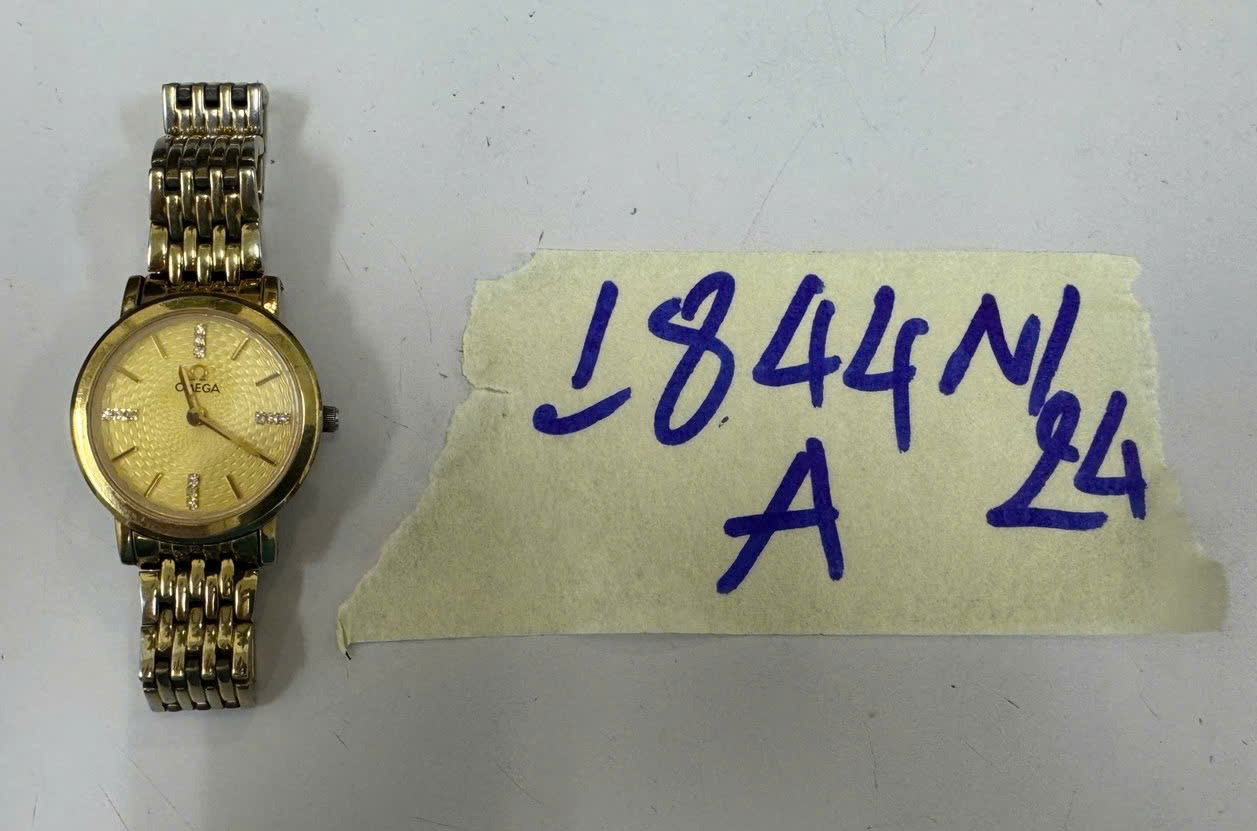 Mô tả: 01 đồng hồ màu vàng có chữ OMEGA.