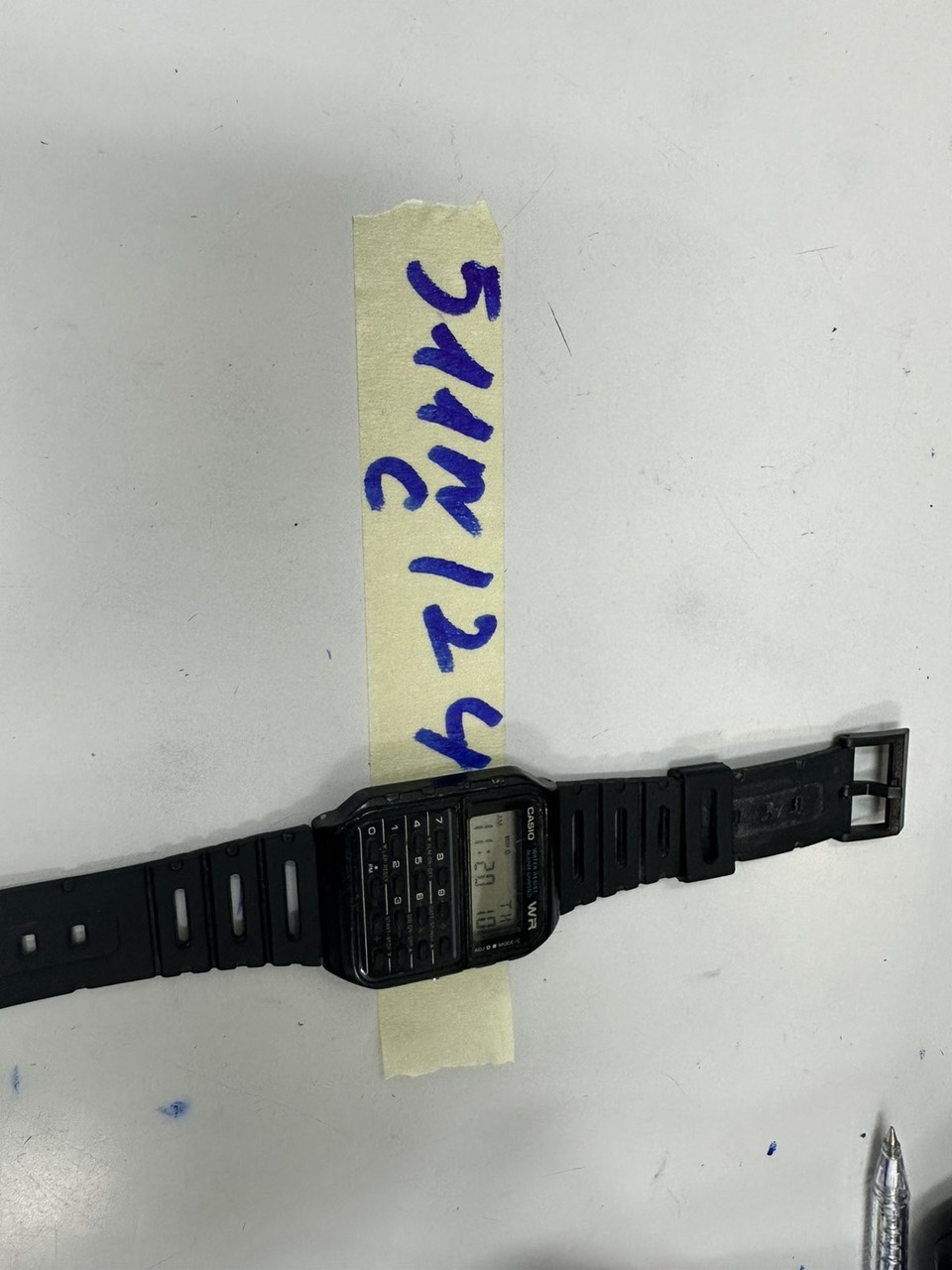 Ngày tiếp nhận: 28/03/2024 Mô tả: 01 đồng hồ SANDA dây nhựa màu đen mặt sau có khắc số 6008. |