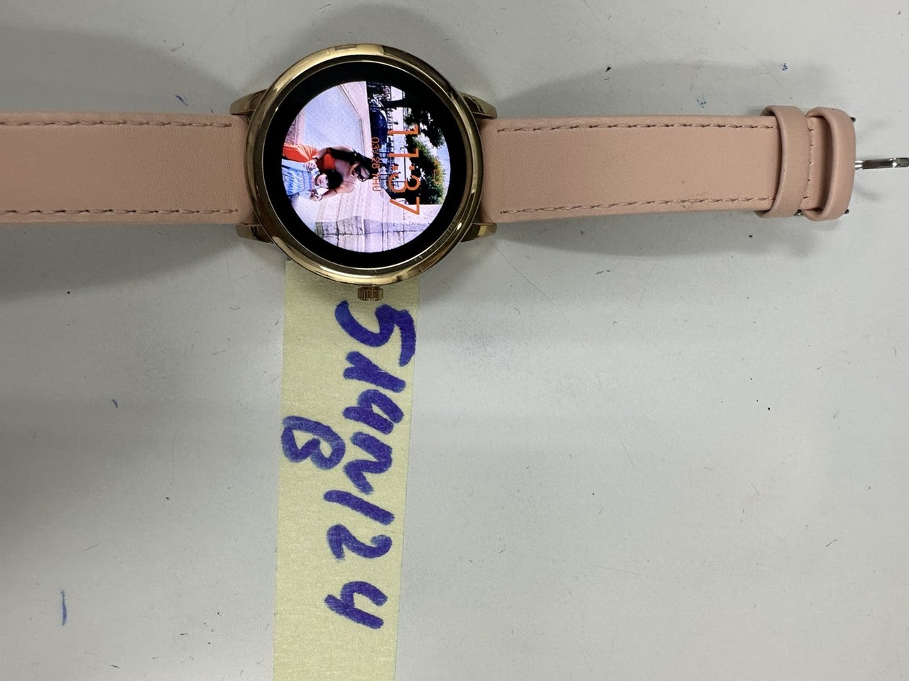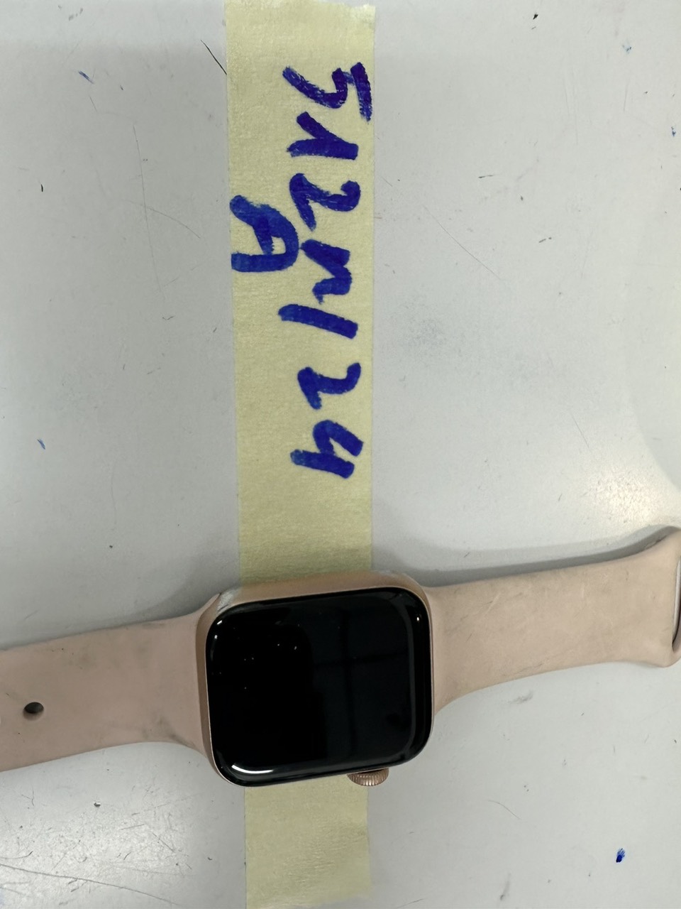 Ngày tiếp nhận: 30/3/2024 viền màu vàng đồng, dây đeo cao su màu hồng nhạt. |
