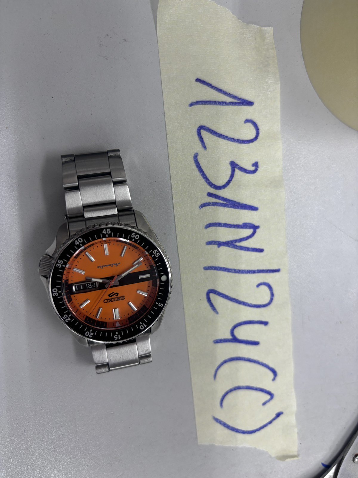 Ngày tiếp nhận: 27/7/2024 Mã hồ sơ: 1231N2024C Mô tả: 01 đồng hồ SEIKO mặt hình tròn màu bạc viềng đen dây kim loại màu bạc. |