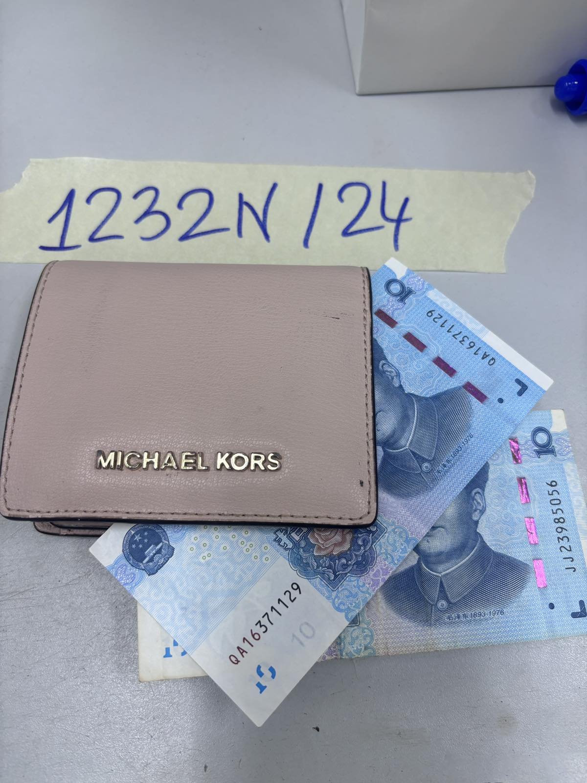 Ngày tiếp nhận: 27/7/2024 Mã hồ sơ: 1232N2024 Mô tả: 01 ví da màu hồng có chữ MICHAEL KORS bên trong có thẻ học sinh tên FU CHUYU sinh năm 2001 và 20 NDT gồm 02 tờ giấy mệnh giá 10 NDT. |