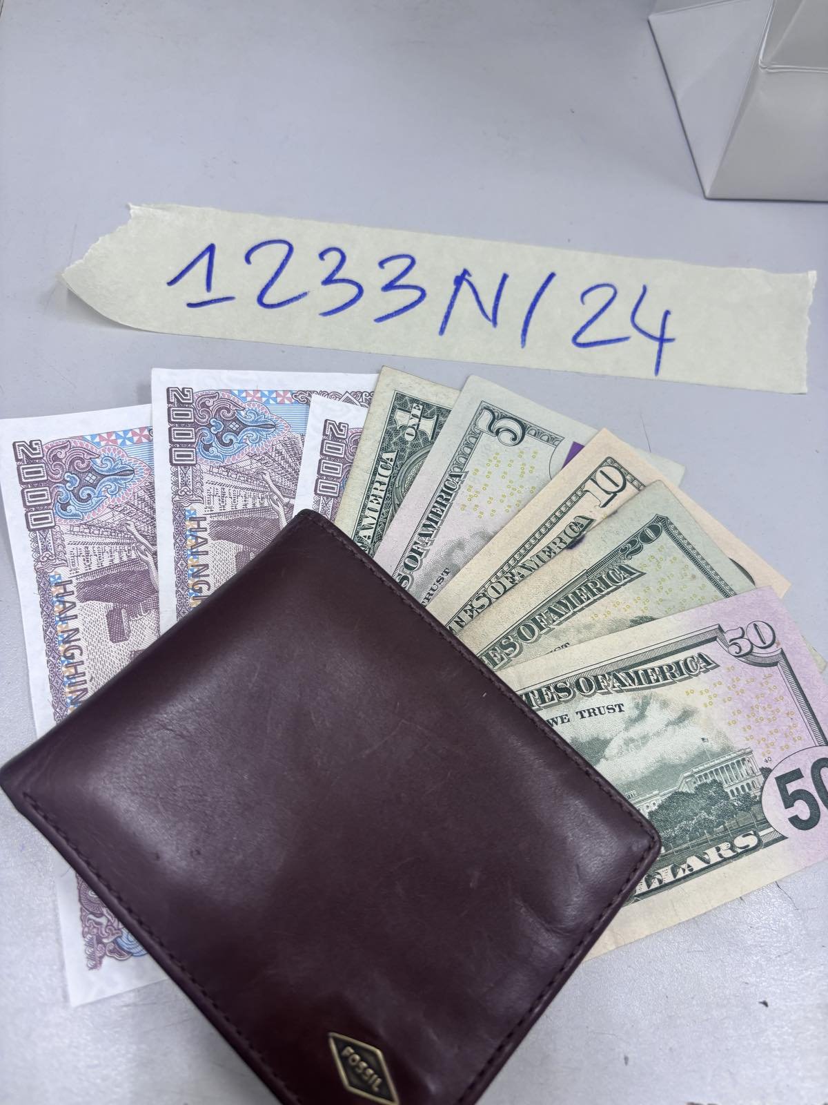 Ngày tiếp nhận: 27/7/2024 Mã hồ sơ: 1233N2024 Mô tả: 01 Ví da màu nâu có chữ FOSIL bên trong có thẻ ngân hàng tên PRADEEP KUMAR, 86 USD gồm 50 USD, 01 tờ 20 USD, 01 tờ 10 USD, 01 tờ 5 USD, 01 tờ 1USD, 6000 VNĐ, 03 tờ tiền 2000VNĐ. |