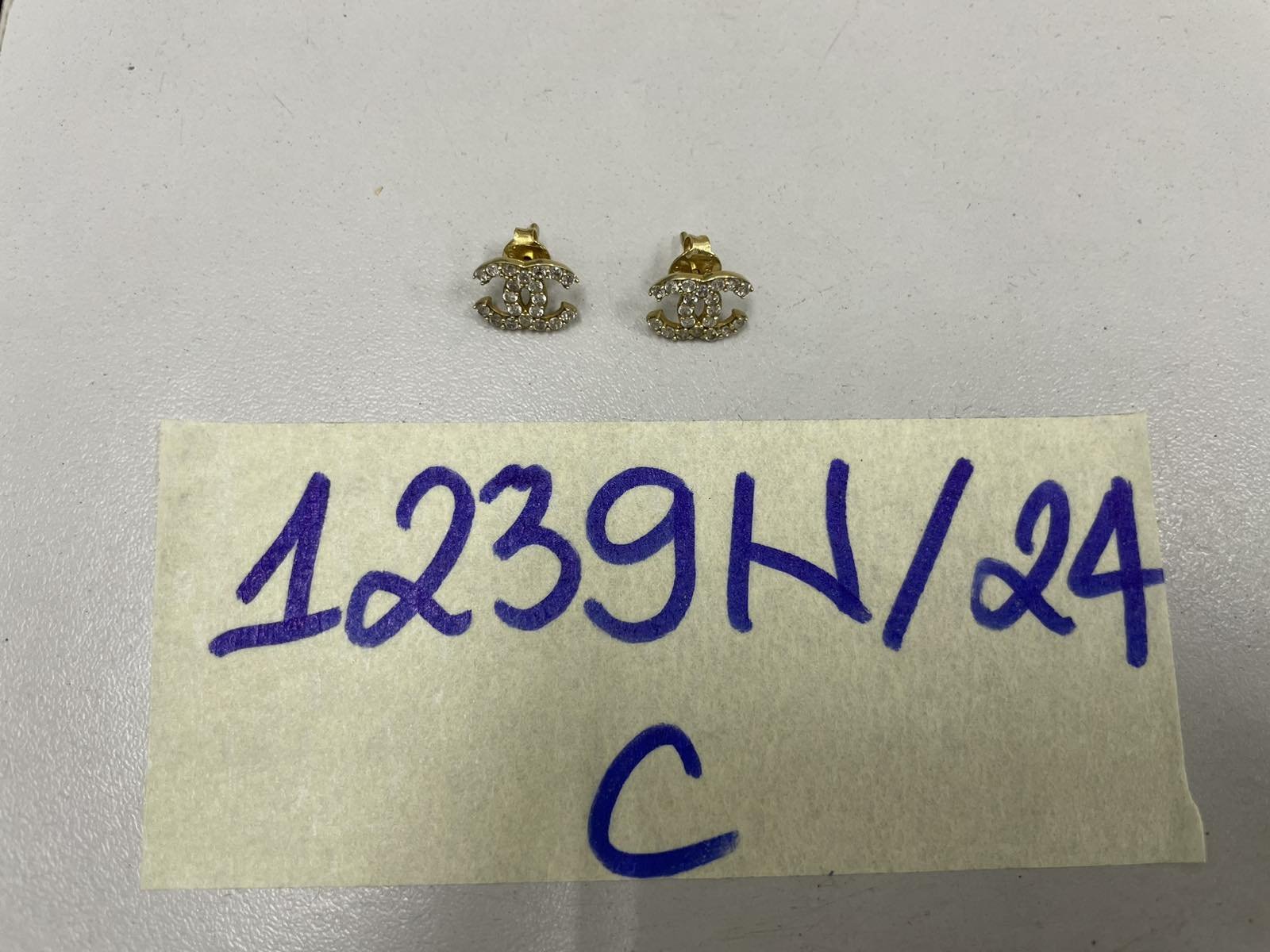 Ngày tiếp nhận: 28/7/2024 Mã hồ sơ: 1239N2024C Mô tả: 01 đôi bông tai kim loại màu vàng hình logo "chanel". |