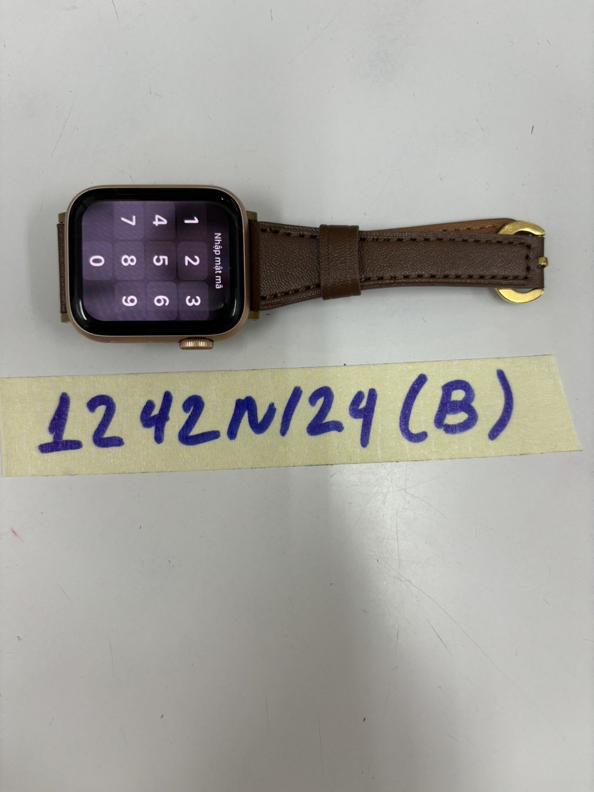Ngày tiếp nhận: 28/7/2024 Mã hồ sơ: 1242N2024B Mô tả: 01 đồng hồ apple watch dây màu nâu. |
