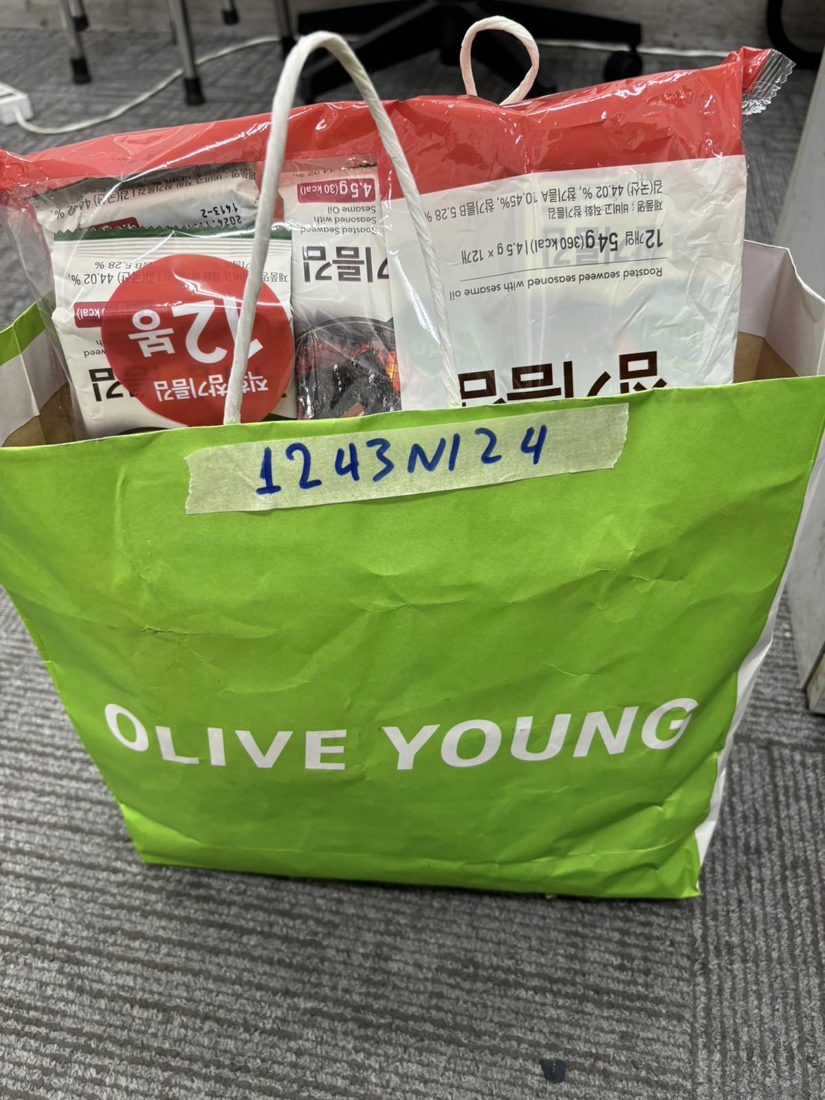 Ngày tiếp nhận: 28/7/2024 Mã hồ sơ: 1243N2024 Mô tả: 01 túi giấy màu trắng - xanh lá bên trong gồm có 01 bịch rong biển sấy, 06 hộp mỹ phẩm màu hồng các loại, 08 thỏi son các loại. |