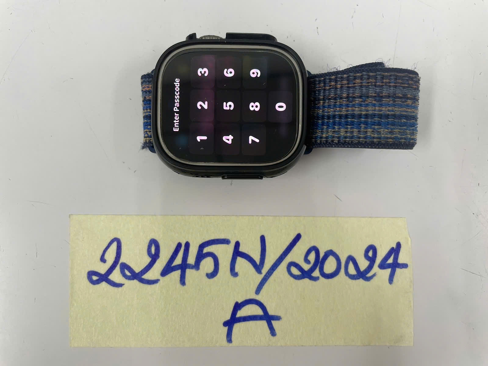 Ngày tiếp nhận: 28/12/2024 Mã hồ sơ: 2245N2024A Mô tả: 01 đồng hồ thông minh Apple màu đen khoá màn hình. |