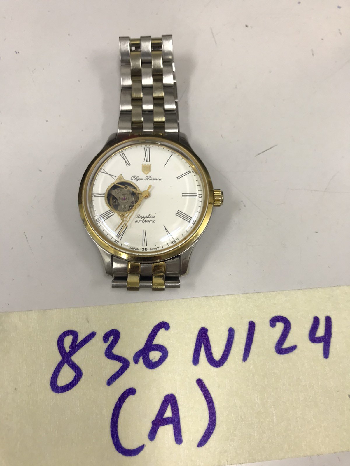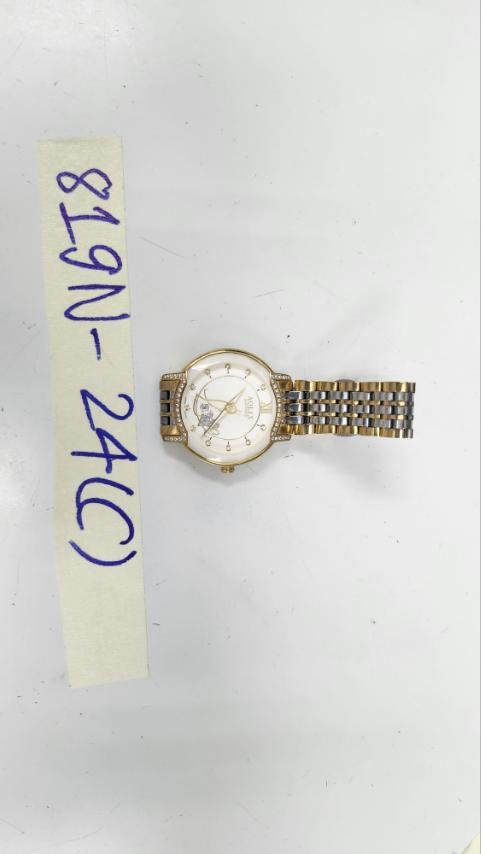 Ngày tiếp nhận: 30/5/2024 Mã hồ sơ: 836N2024A Mô tả: 01 đồng hồ dây kim loại màu bạc, có mặt hình tròn viền màu vàng (OLYM TIANUS). |
