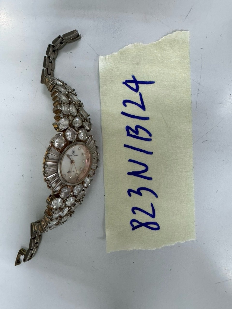 Ngày tiếp nhận: 30/5/2024 Mã hồ sơ: 836N2024E Mô tả: 01 đồng hồ dây kim loại màu trắng, mặt đồng hồ có chữ "WR LITHIUM. |