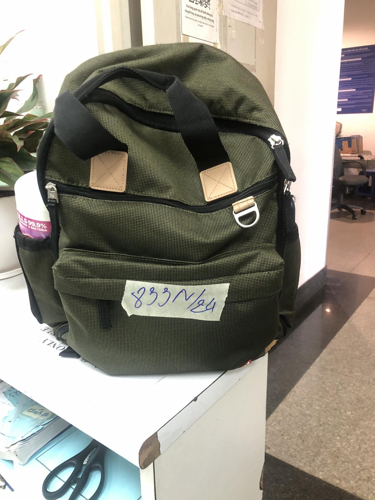 Ngày tiếp nhận: 30/5/2024 Mã hồ sơ: 833N2024 Mô tả: 01 balo vải màu xanh lá cây bên trong chứa 02 bình nước và đồ dùng cá nhân. |