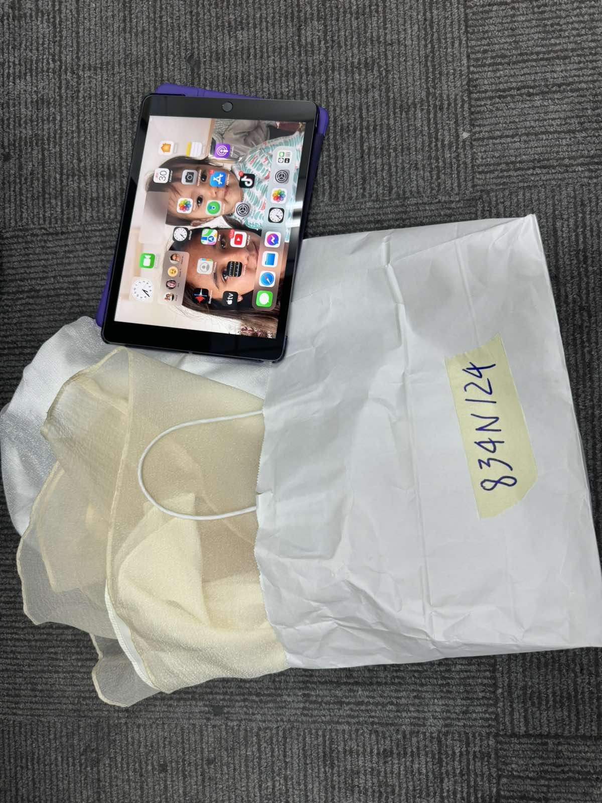 Ngày tiếp nhận: 30/5/2024 Mã hồ sơ: 834N2024 Mô tả: 01 túi xách giấy màu trắng bên trong chứa: 01 máy tính bảng Ipad có bao màu tím, 02 cái váy. |