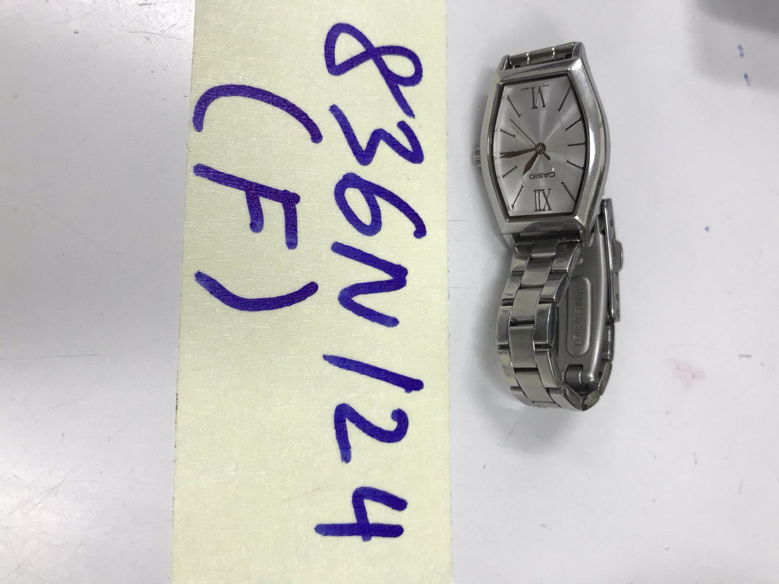 Ngày tiếp nhận: 30/5/2024 Mã hồ sơ: 836N2024F Mô tả: 01 đồng hồ dây kim loại màu bạc, mặt màu trắng có chữ "CASIO". |