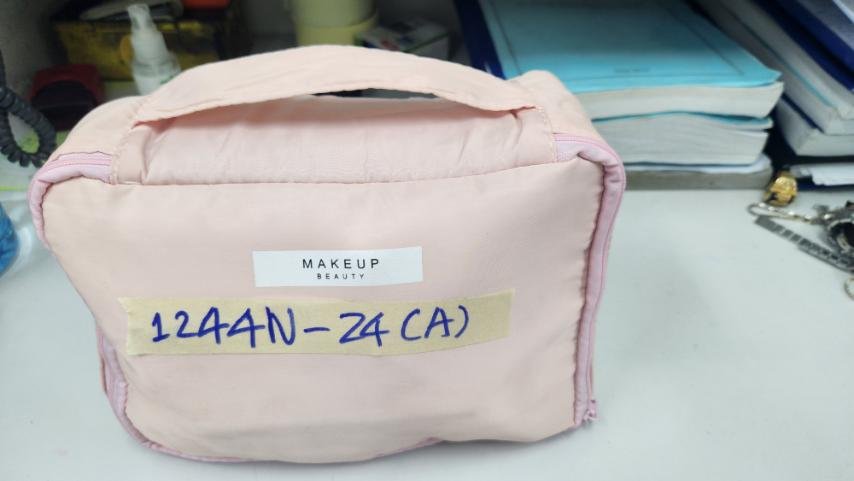 Ngày tiếp nhận: 29/7/2024 Mã hồ sơ: 1244N2024A Mô tả: 01 túi bằng vải màu hồng, bên trong có mỹ phẩm cá nhân và 02 túi đỏ nhỏ. Trong 01 túi đỏ có 01 sợi dây kim loại màu vàng bên ngoài có ghi chữ "Tiệm vàng Bạch Kim". |