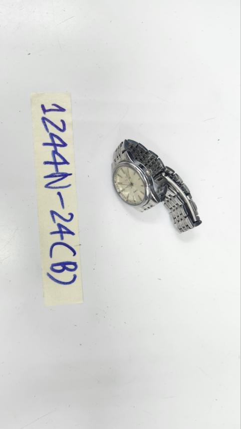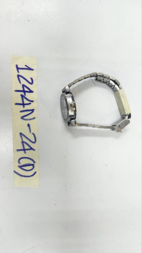 Ngày tiếp nhận: 29/7/2024 Mã hồ sơ: 1244N2024D Mô tả: 01 đồng hồ mặt tròn màu bạc, dây kim loại, trên mặt có chữ "Quartz". |