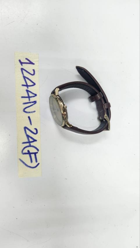 Ngày tiếp nhận: 29/7/2024 Mã hồ sơ: 1244N2024F Mô tả: 01 đồng hồ dây da màu nâu, mặt kim loại màu vàng, có chữ FJORD. |