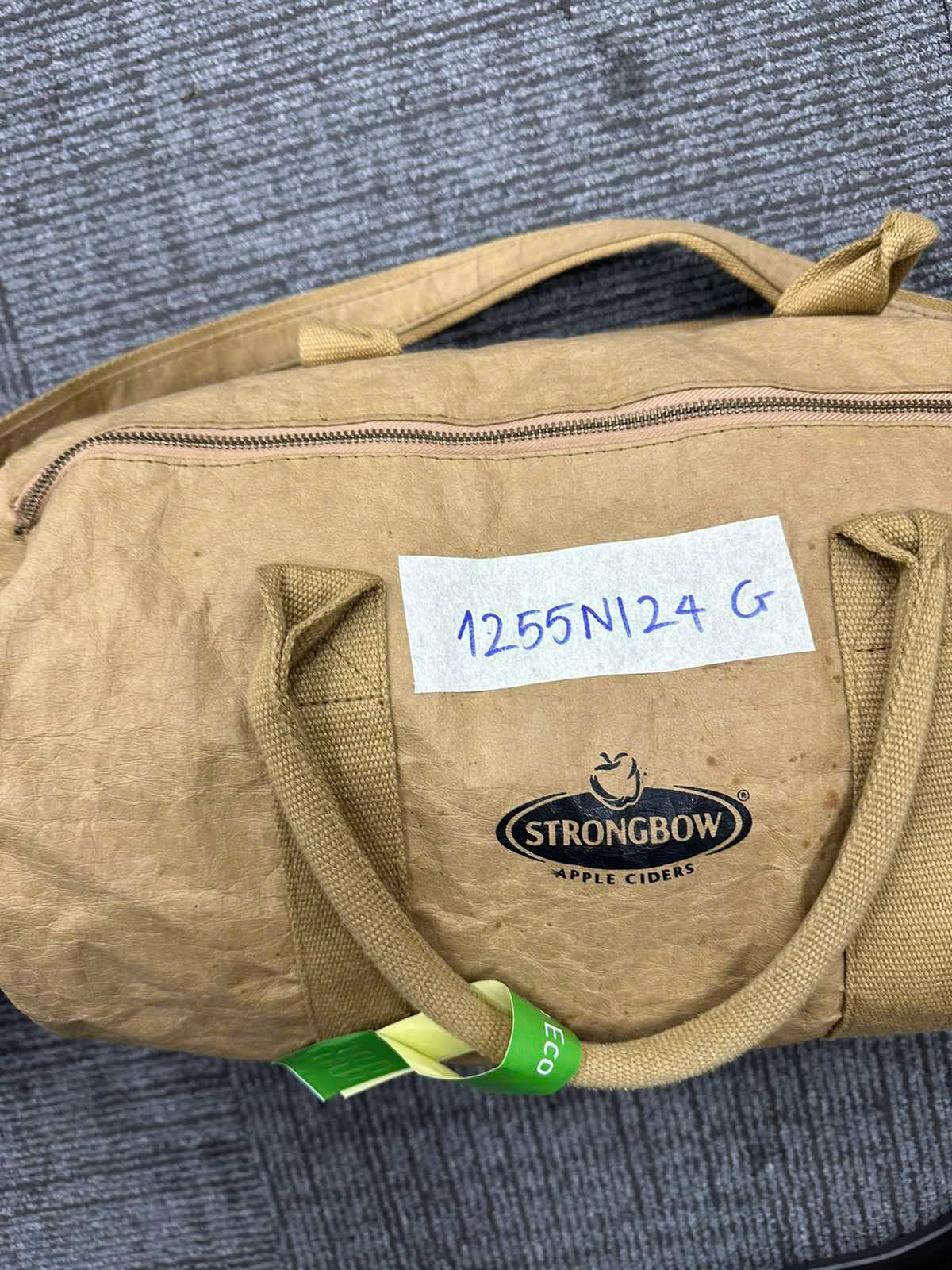 Ngày tiếp nhận: 31/7/2024 Mã hồ sơ: 1255N2024G Mô tả: 01 túi màu vàng nhạt bên hông có chữ "SRONGBOW" bên trong có quần áo. |