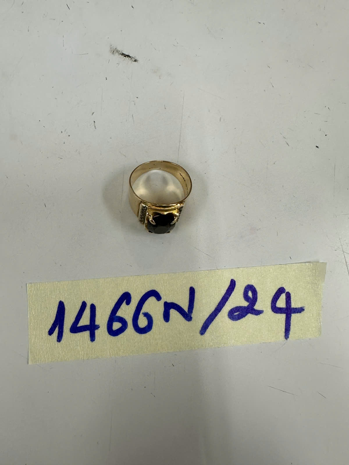 Ngày tiếp nhận: 31/8/2024 Mã hồ sơ: 1466N2024 Mô tả: 01 nhẫn màu vàng đính hạt đen. |