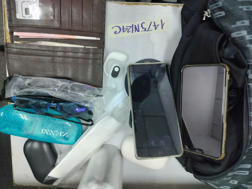 Ngày tiếp nhận: 01/9/2024 Mã hồ sơ: 1475N2024C Mô tả: 01 túi xách tay màu đen có hoa văn, trên dây đeo có chữ odbo bên trong có chứa 01 ví màu nâu có chữ ORIGINAL EXPRESS bên trong có chứa 54 tờ tiền 100 CNY, 03 tờ tiền 10 CNY, 02 tờ tiền 20 CNY, 01 tờ tiền 05 CNY, 02 tờ tiền 01 CNY, 02 tờ tiền 1000 WON, 01 tờ tiền 10 USD, 03 tờ tiền 01 YIJIAO, 02 tờ tiền 05 WUJIAO, 13 tờ tiền 10 CANADA, 10 tờ tiền 05 CANADA, 01 tờ tiền 20 CANADA, 01 bình nước màu bạc, 05 mắt kính, 02 điện thoại màu đen kèm ốp lưng (01 Iphone, 01 Redmi), 04 tai nghe (01 hộp màu đen bên trong có chứa 02 tai nghem 01 hộp màu trắng bên trong chứa 02 tai nghe có chữ SHENLANDUN, 01 tai nghe màu trắng, 01 dây tai nghe màu trắng, 01 giá để điện thoại màu đen. |