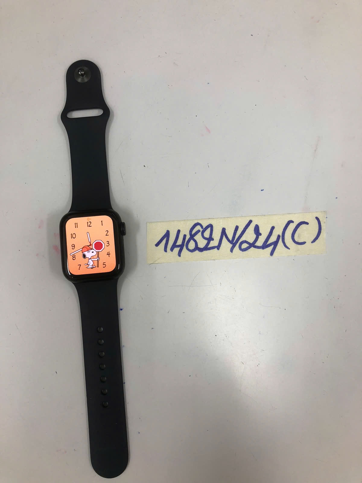 Ngày tiếp nhận: 02/9/2024 Mã hồ sơ: 1483N2024B Mô tả: 01 đồng hồ thông minh màu đen, dây cao su màu xanh lục, có chữ WATCH SERIES 5. |