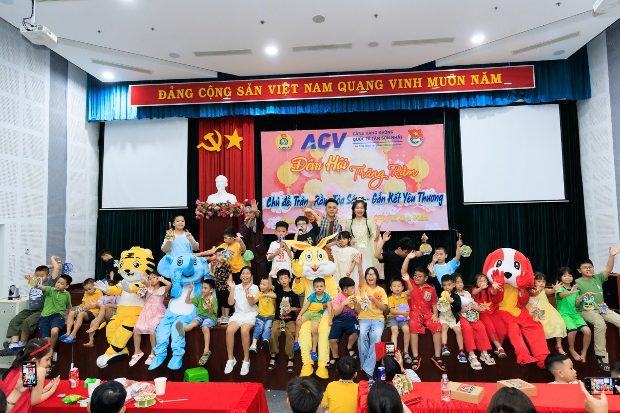 Chiều ngày 03/10/2025 vừa qua, Ban Chấp hành Công đoàn, Đoàn Thanh niên Cảng HKQT Tân Sơn Nhất đã phối hợp tổ chức Chương trình đêm Hội với chủ đề “Trăng rằm tỏa sáng – Gắn kết yêu thương” tại toà nhà Tổng Công ty Cảng hàng không Việt Nam-CTCP (ACV) cho hơn 500 thiếu nhi và phụ huynh cùng tham gia vui hội.