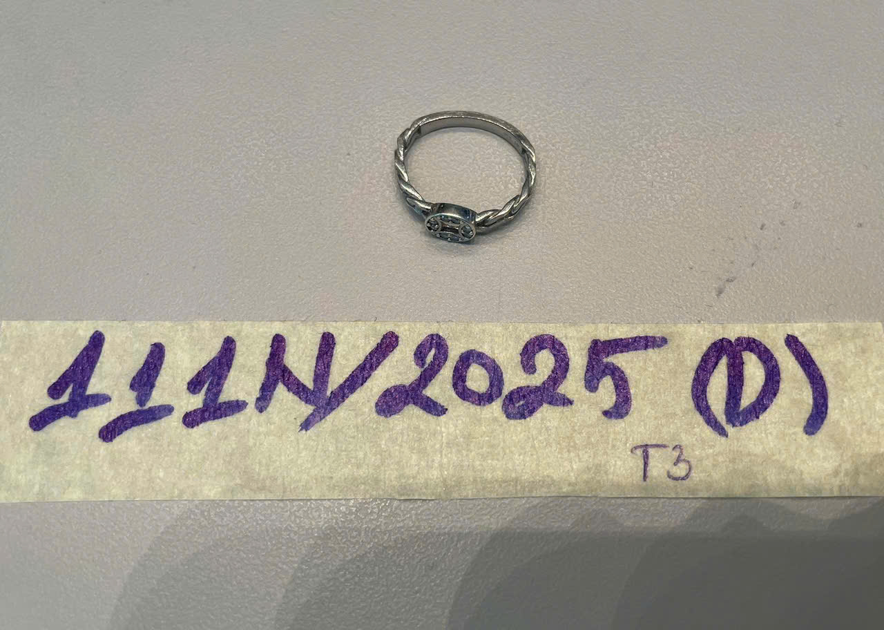 Ngày tiếp nhận: 02/12/2025 Mã hồ sơ: 111N2025E Mô tả: 01 nhẫn trắng, đính đá trong, cũ. |