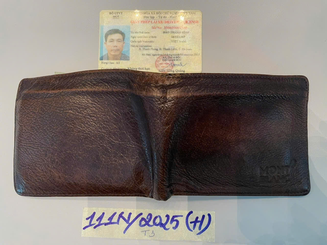 Ngày tiếp nhận: 02/12/2025 Mã hồ sơ: 111N2025H Mô tả: 01 ví da nâu có giấy tờ tên ĐÀO THANH BÌNH, 12 tờ ghi 500.000vnđ, 01 tờ ghi 100.000vnđ, 05 tờ ghi 10.000vnđ, và 2 USD. |