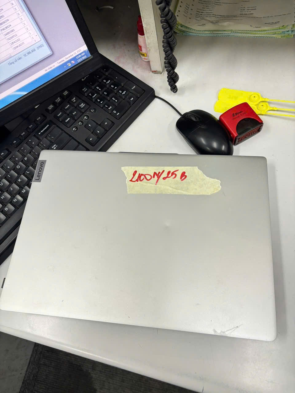 Ngày tiếp nhận: 02/12/2025 Mã hồ sơ: 2100N2025B Mô tả: 01 laptop màu bạc mang nhãn hiệu LENOVO có số ID: 2022AP20427. |
