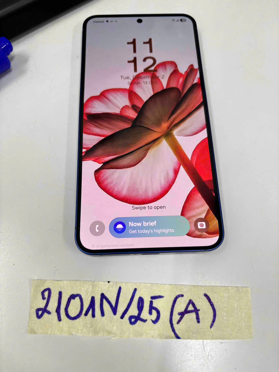 Ngày tiếp nhận: 02/12/2025 Mã hồ sơ: 2101N2025A Mô tả: 01 điện thoại mặt lưng màu xanh, mang nhẫn hiệu SAMSUNG. |