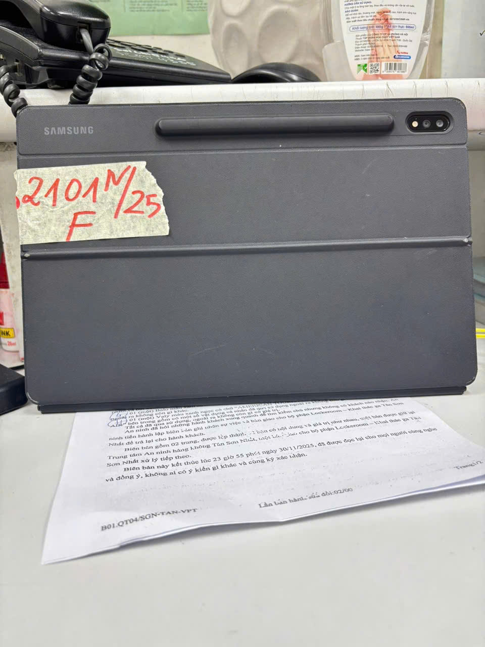Ngày tiếp nhận: 02/12/2025 Mã hồ sơ: 2101N2025F Mô tả: 01 máy tính bảng màu đen, nhãn hiệu SAMSUNG GALAXY TAB S7+, kèm bàn phím và bút. |