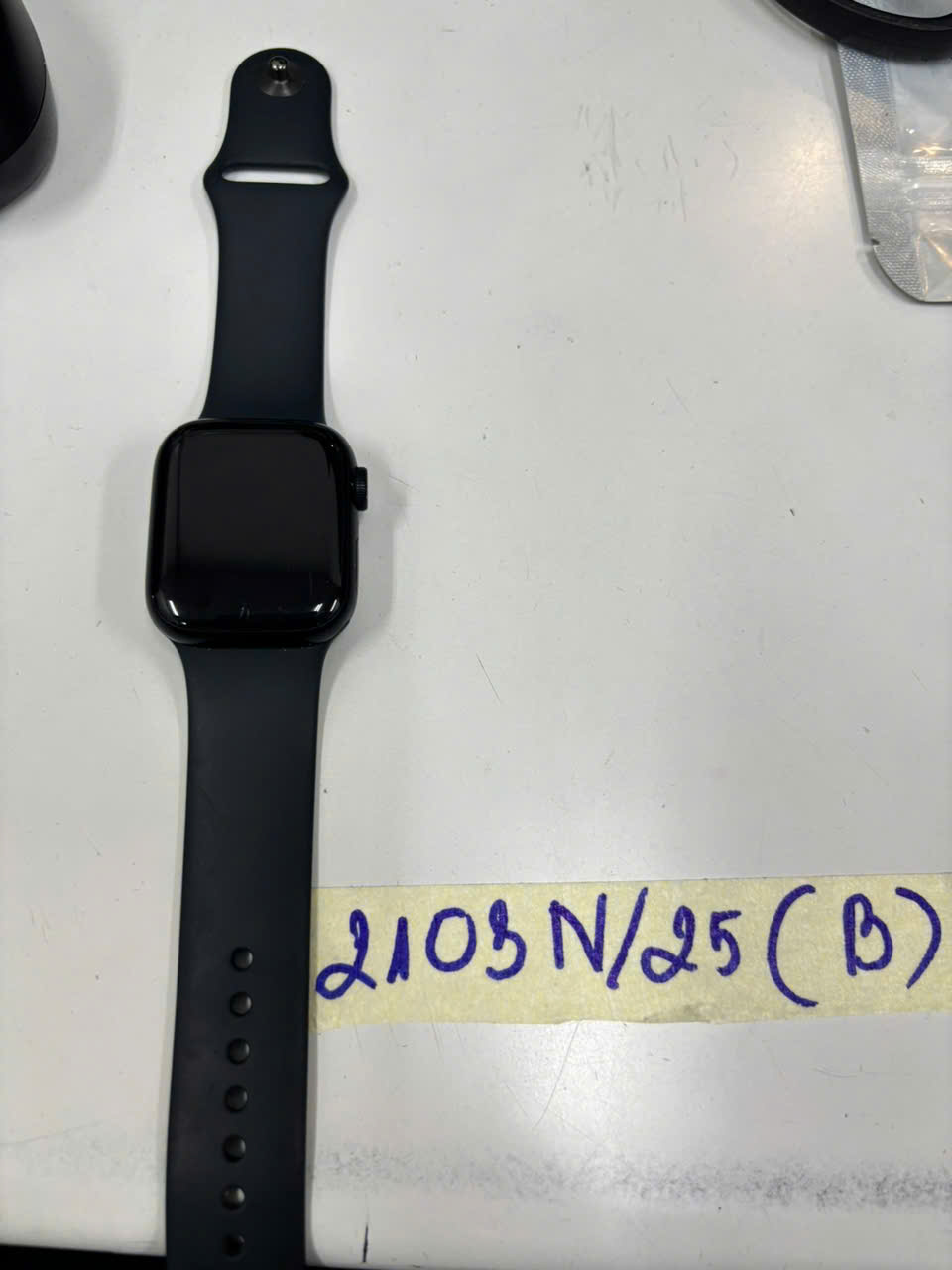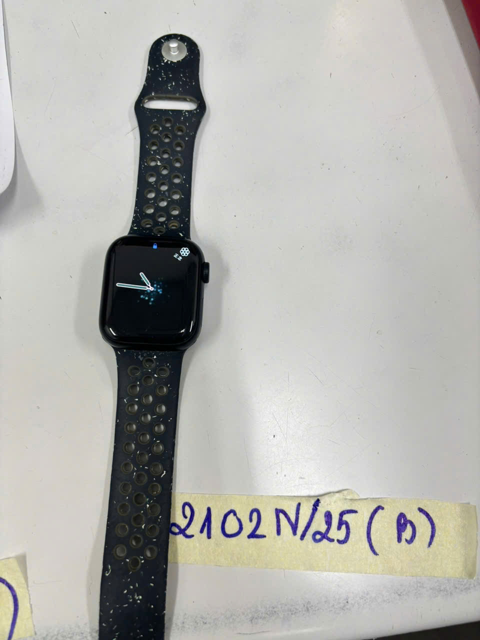 Ngày tiếp nhận: 02/12/2025 Mã hồ sơ: 2102N2025B Mô tả: 01 đồng hồ thông minh màu đen hình chữ nhật có chữ APPLE WATCH SERIES 9, dây nhựa màu đen chấm bi trắng. |