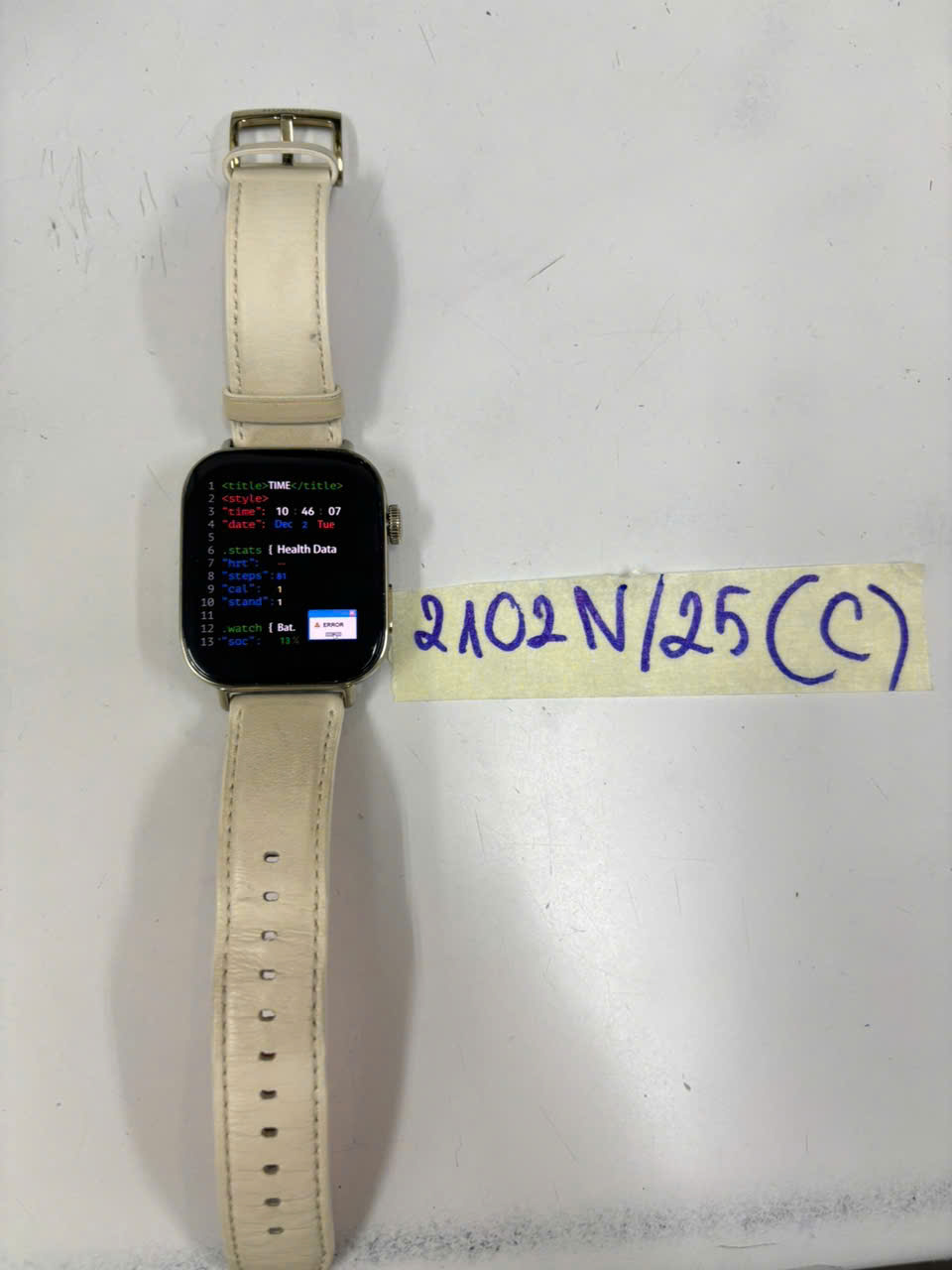 Ngày tiếp nhận: 02/12/2025 Mã hồ sơ: 2102N2025C Mô tả: 01 đồng hồ thông minh màu trắng hình chữ nhật, không rõ hiệu, dây giống da màu trắng. |